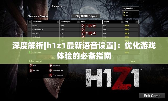 标题:深度解析[h1z1最新语音设置]:优化游戏体验的必备指南